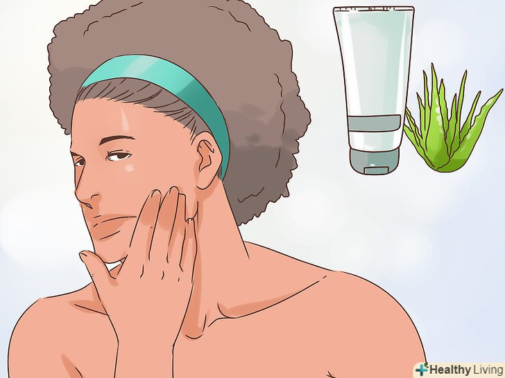Нанесіть м'якоть алое вера, гель або спрей, щоб зменшити роздратування після гоління. можна придбати гелі та спреї на основі алое вера, але найкраще використовувати м'якоть з рослини. Легкими рухами нанесіть її на уражену ділянку і залиште вбиратися на півгодини або довше, а потім змийте холодною водою. При необхідності або бажанні можна повторити. [8]- Якщо ви використовуєте покупне засіб, перевірте його на наявність спирту. Уникайте засобів на основі спирту, так як вони сушать шкіру, викликаючи подальше роздратування.