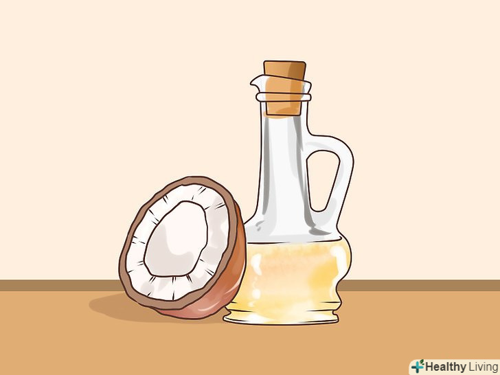Зволожите і заспокойте шкіру кокосовим маслом. втирайте невелику кількість кокосового масла в роздратовану шкіру. Якщо ви не збираєтеся змивати його, використовуйте стільки масла, скільки зможе увібрати в себе шкіра. Як варіант, можна нанести тонкий шар, залишити його на півгодини, а потім змити теплою водою. [11]- Якщо ви залишаєте кокосове масло на шкірі, стежте за тим, щоб воно не потрапляло на одяг або тканину на меблях, так як на них можуть залишитися складні плями. [12]