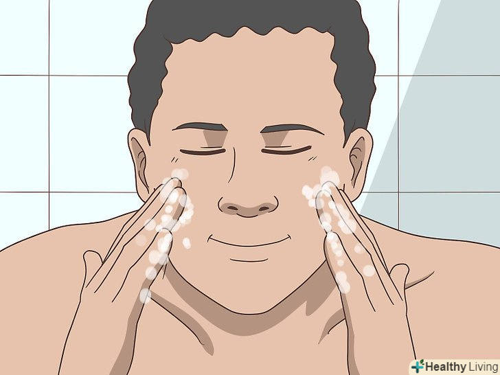 Промийте шкіру теплою водою. дуже важливо починати процедуру з чистою шкірою. Наприклад, для ретельного очищення шкіри можна використовувати м'яку пінку для вмивання. Для інших частин тіла підійде мило або гель для душу і вода. Головне-проводити процедуру на чистій шкірі: підійде будь-який щоденний Очищуючий засіб. [4]- Однак, краще не використовувати занадто агресивні засоби: наприклад, засоби, що містять такі речовини як саліцилова кислота. Виберіть що-небудь більш щадне.