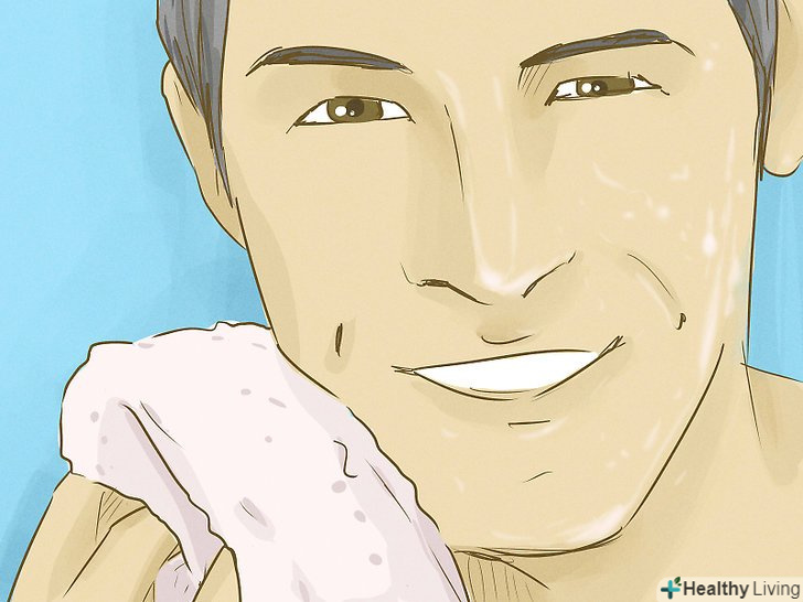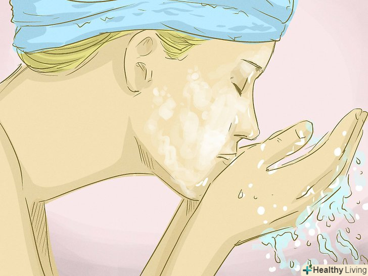 Змийте засіб теплою водою. після того як ви вмиєтеся спеціальним засобом, обполосніть обличчя водою кімнатної температури. [3] щоб повністю змити засіб з обличчя, обполосніть шкіру водою кілька разів.- Щоб видалити залишки миючого засобу з шкіри, можна скористатися бавовняною серветкою. Однак не тріть шкіру обличчя. Просто намочіть серветку і акуратно проведіть нею по обличчю, щоб прибрати залишки кошти.