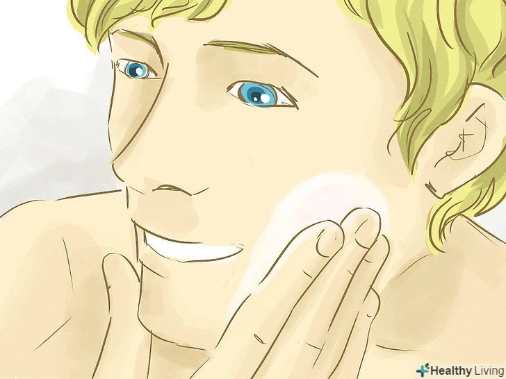 Нанесіть на шкіру зволожуючий крем. шкіра обличчя повинна завжди залишатися зволоженою — це допоможе їй зберегти здоров'я і гладкість. Отже, в кінці завжди наносите зволожуючий крем. [5]- Вам потрібен саме той зволожуючий крем, який підходить вашому типу шкіри. Наприклад, якщо у вас жирна шкіра, виберіть зволожуючий крем, що не містить масел. Якщо у вас суха шкіра, вам підійде крем з високим вмістом масел спеціально для сухої шкіри.