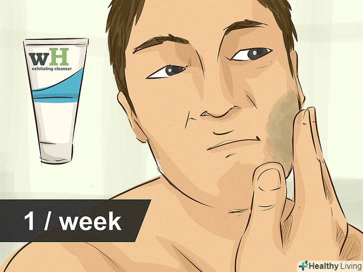 Два рази на тиждень користуйтеся очищує отшелушивающим засобом. відлущування — корисна процедура для деяких типів шкіри. Однак якщо проводити її занадто часто, у деяких типів шкіри це може викликати роздратування. Щоб запобігти роздратування, найкраще проводити процедуру відлущування не частіше двох разів на тиждень. [6]- Виберіть відлущуючий засіб, який містить не більше 2% саліцилової кислоти або 10% гліколевої кислоти. Якщо вміст цих речовин вище, підвищується ризик подразнення шкіри.