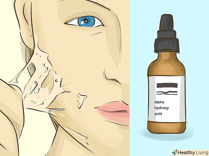 Шукайте косметичні продукти, що містять альфа-гідроксикислоту. такі продукти особливо корисні при лікуванні проблемної шкіри. Альфа-гідроксикислота сприяє видаленню мертвих клітин шкіри і очищає пори, що робить шкіру більш гладкою. До того ж, вона служить хорошим засобом для профілактики прищів. [9]- Знайдіть засіб для вмивання або зволожуючий крем, який містить альфа-гідроксикислоту.