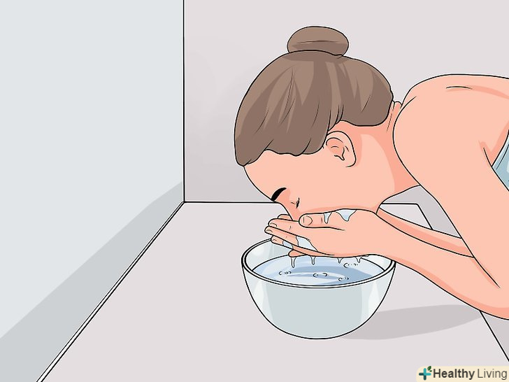 Вмивайтеся бутильованою водою. якщо умивання водою з-під крана робить помітне негативно вплив на шкіру (викликає роздратування або почервоніння), то використовуйте бутильовану воду. Хоча ці витрати можуть здатися надмірними, але вони будуть виправданими, якщо ваша шкіра особливо чутлива. Переконайтеся, що використовуєте достатньо води, щоб змити миючий засіб і не залишити нічого на обличчі. [8]- Іншим рішенням може бути використання очищаючої води, яка не вимагає змивання. Така вода одночасно очищає і зволожує шкіру. Використання дистильованої води теж може виявитися хорошим варіантом. [9]
