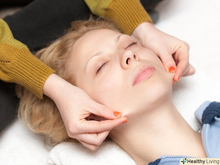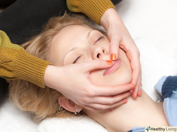 Масажуйте щоки і вилиці, поступово спускаючись вниз до підборіддя.