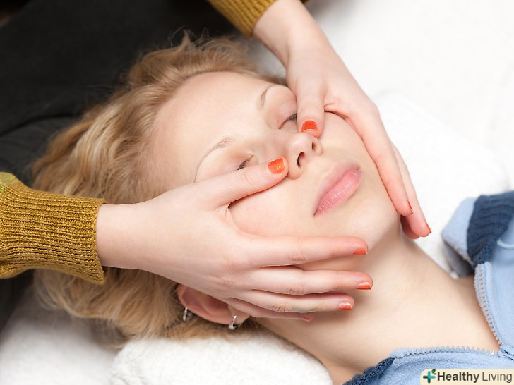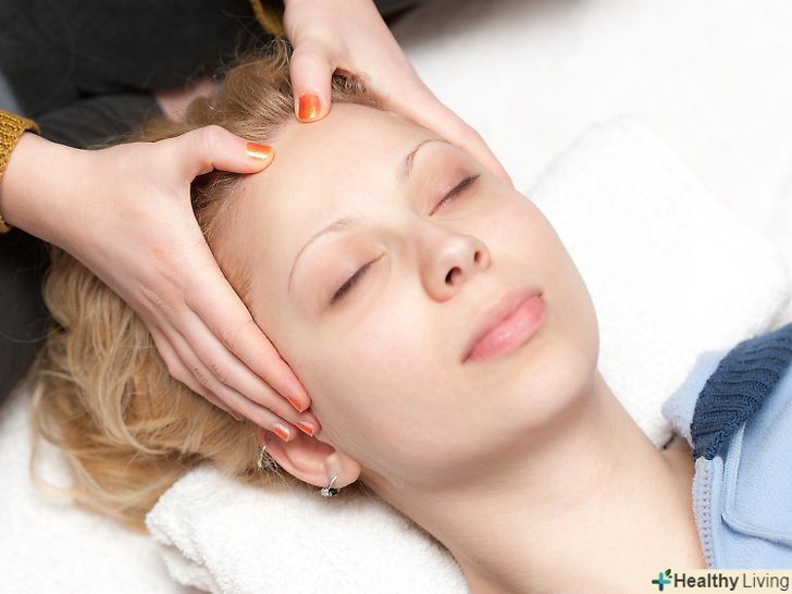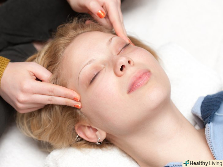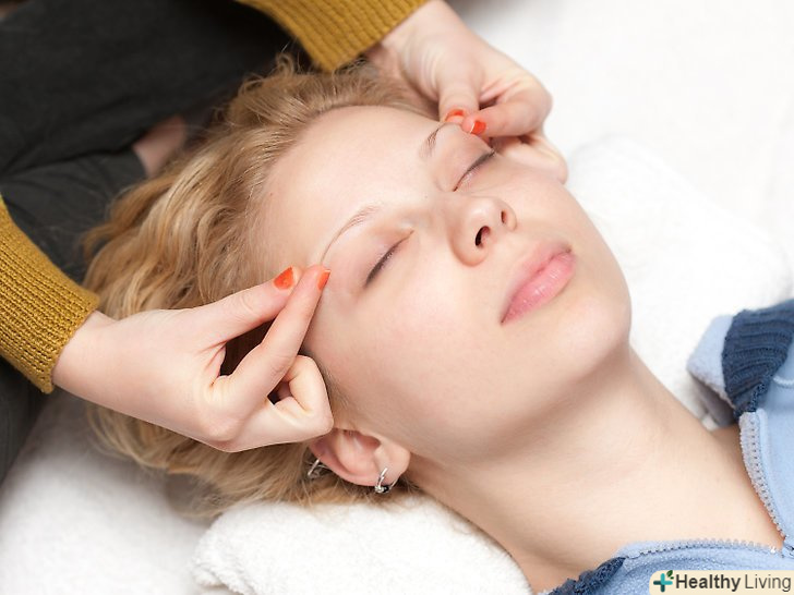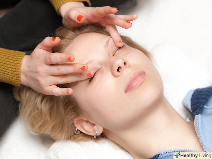 Покладіть два пальці на віскі і масажуйте круговими рухами дві або три хвилини, злегка натискаючи.