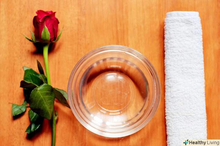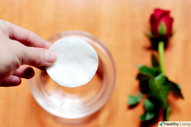 Нанесіть рожеву воду на обличчя. занурте в неї ватяну кульку і нанесіть на обличчя. Це відразу ж освіжить ваше обличчя.