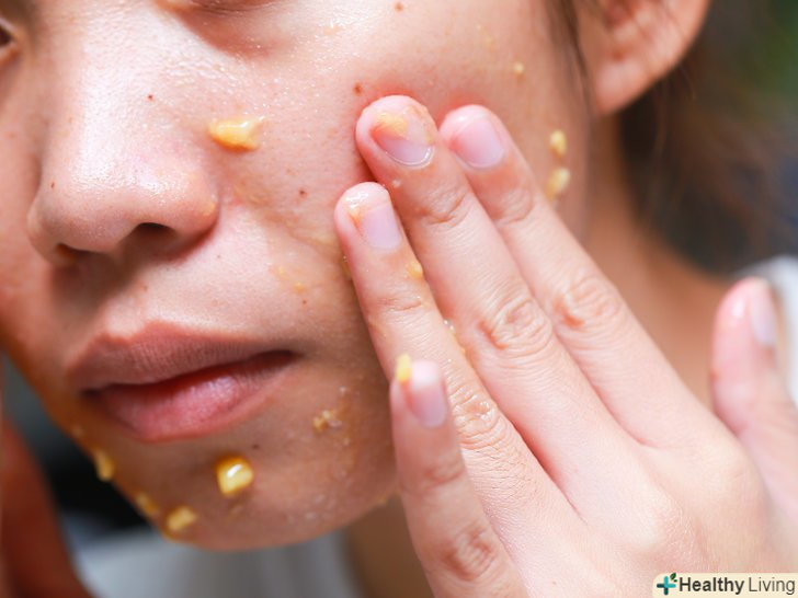 Зробіть медову маску від пігментних плям і шрамів. змішайте 2 чайні ложки сирого меду з половиною чайної ложки лимонного соку. Нанесіть отриману суміш на обличчя, і почекайте, поки вона вбереться в шкіру протягом приблизно 20 хвилин. Змийте маску і промокніть обличчя насухо. [14]- Лимонний сік володіє природним отшелушивающим властивістю. Завдяки його застосуванню можуть значно зменшитися пігментні плями і шрами на обличчі.