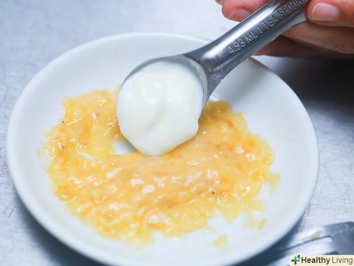 Приготуйте необхідну для маски суміш. візьміть невелику миску. Поріжте стиглий банан на дрібні шматочки, і розімніть його ложкою або виделкою до однорідної суміші пастоподібної консистенції. Змішайте 1 чайну ложку меду і 1 чайну ложку лимонного соку. [1] ретельно перемішайте всі інгредієнти, щоб у вас вийшла суміш однорідної консистенції.
