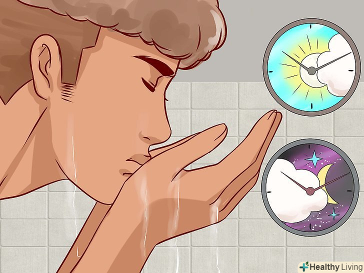 Вмивайтеся двічі на день. мийте обличчя та інші ділянки тіла, де є прищі, як мінімум два рази на день. Також вмивайтеся, якщо сильно спітніли. Раз в день приймайте душ або ванну, щоб змити жир і бруд з шкіри. [26]- Якщо ви багато потієте, приймайте душ після активних занять, щоб змити шкірний жир.