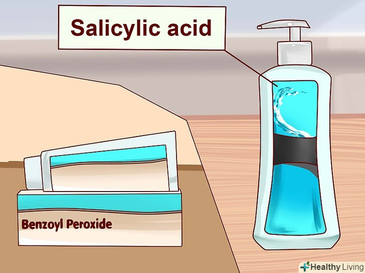 Використовуйте засоби проти акне. існують спеціальні засоби для вмивання, креми і засоби для точкового лікування. Купіть засіб з перекисом бензоїлу або саліцилової кислотою. [35]- Пам'ятайте, що ці засоби можуть дратувати шкіру і посилювати висип. Обговоріть їх застосування з лікарем.
