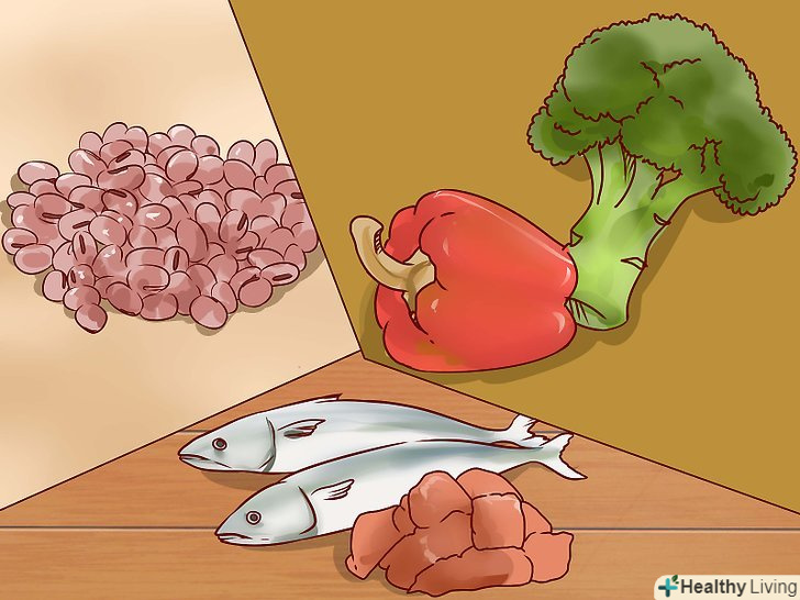 Їжте більше продуктів, корисних для шкіри. вітаміни А і D важливі для здоров'я шкіри. [12] Омега-3 жирні кислоти також допоможуть позбутися від акне завдяки своїм протизапальним властивостям. [13]- Вітаміну А багато в шпинаті, моркві, брокколі, червоних перцях, бататі і кабачках. Цього вітаміну також багато у фруктах: в манго, дині і абрикосах. Бобові теж містять вітамін А, як і м'ясо і риба (оселедець, лосось). [14]