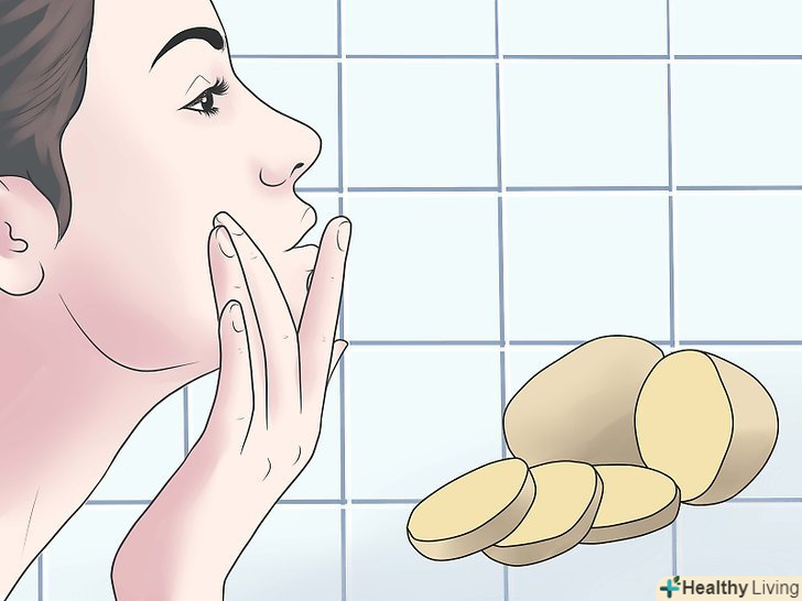 Прикладіть шматочок сирої картоплі до запаленої ділянки шкіри. сиру картоплю має протизапальну дію. Прикладіть картоплю до шкіри на кілька хвилин, а потім змийте його холодною водою.