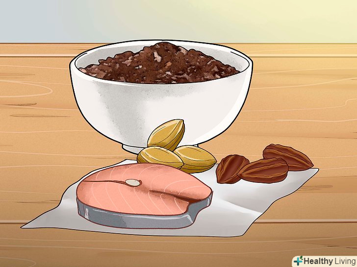 Додайте в свій раціон продукти з високим вмістом омега-3. Омега-3-жирні кислоти допомагають контролювати секрецію шкірного сала. Омега - 3 міститься в наступних продуктах: насіння і горіхи, такі як лляне насіння і лляне масло, насіння Чіа, Каліфорнійський горіх, волоські горіхи, риба і риб'ячий жир (лосось, сардини, скумбрія, сиг і оселедець), авокадо. [24]- Також можна споживати Омега-3 в якості харчової добавки.