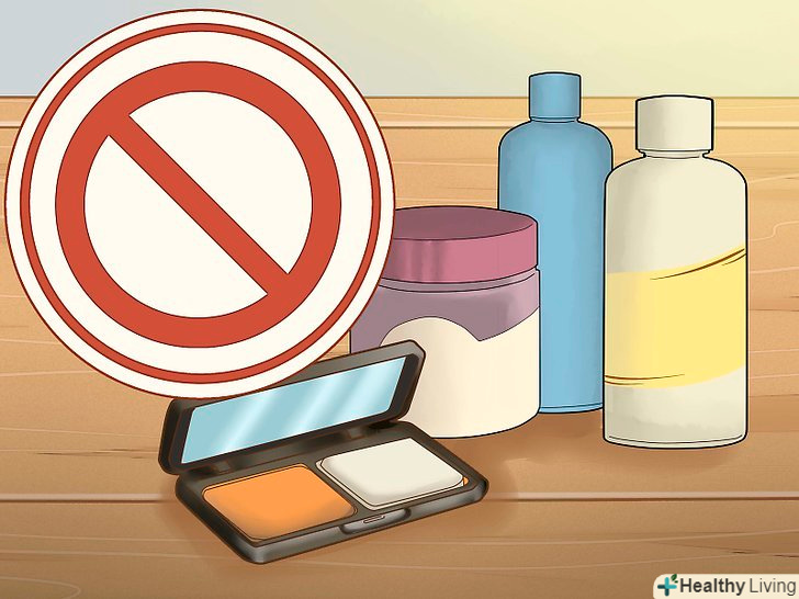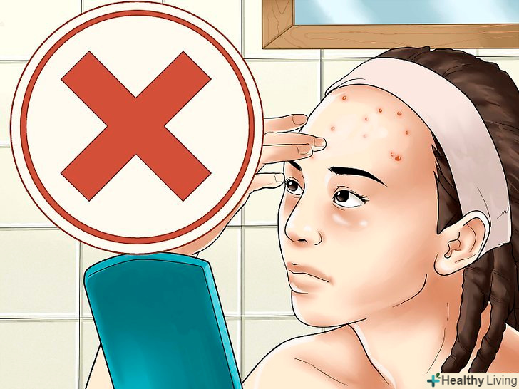 Уникайте засоби за доглядом, дратівливі шкіру. деякі засоби можуть дратувати шкіру і викликати акне. Якщо у вас багато прищів на лобі, намагайтеся використовувати мінімальну кількість косметики. Засоби для укладання волосся (гель, мус, лак) і сонцезахисні креми теж можуть викликати вугровий висип. [28]- Хімічні та маслосодержащие речовини, що використовуються в макіяжі, і навіть в "гіпоалергенному" макіяжі, можуть викликати роздратування і пошкодження шкіри.