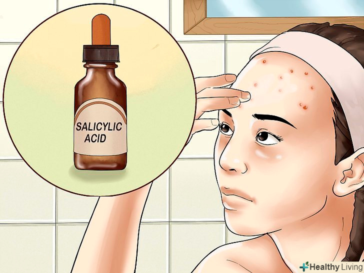 Спробуйте саліцилову кислоту. крім перекису бензоїлу, впоратися з висипом вугрів може допомогти саліцилова кислота, яка є в складі очищувальних засобів та інших продуктів по догляду за обличчям. Концентрація кислоти в продукті варіюється від 0,5% до 5%.- Побічними ефектами можуть бути подразнення і печіння шкіри. [4] нанесіть невелику кількість кислоти на шкіру і подивіться на реакцію шкіри протягом трьох днів.