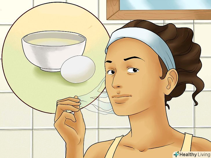 Зробіть маску з яєчного білка. яєчні білки допомагають в боротьбі з пігментацією, зміцнюють і тонізують шкіру. При підготовці маски яєчні білки потрібно збити в піну з консистенцією схожою з безе. Можна додати лимон для відбілювання або мед для антибактеріального ефекту. [16]- Збийте три яєчні білки і одну столову ложку свіжого лимонного соку до утворення густої піни.