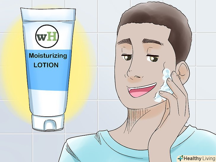Нанесіть лосьйон після гоління. використовуйте зволожуючий лосьйон без ароматизаторів на поголеній частині тіла. Лосьйони знижують сухість шкіри від гоління, яка викликає багато симптомів подразнення шкіри. [13]