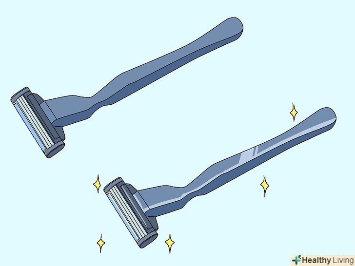 Купуйте нову бритву. використання тупих лез викликає непотрібне роздратування шкіри при будь-яких умовах. Замість ковзання по шкірі тупе лезо тягне її, а це викликає більше роздратування. Уявіть, як воно може поранити Вам шкіру - ні вже, спасибі! [7]- Бритву можна використовувати кілька разів, головне стежити за нею належним чином. Обов'язково мийте її після використання. Не залишайте її вологою, так як вода руйнує метал. Очистіть її за допомогою спирту, щоб убити бактерії. [8]