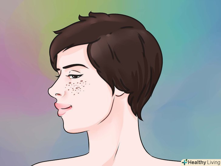 Зробіть зачіску. можна зробити відповідну стрижку. Стрижка є відмінним способом змінити ваш зовнішній вигляд. Ви можете приховати або підкреслити ваші веснянки за допомогою відповідної зачіски.- Коротка стрижка, така як боб або пікс, приверне увагу до вашого обличчя. [12]