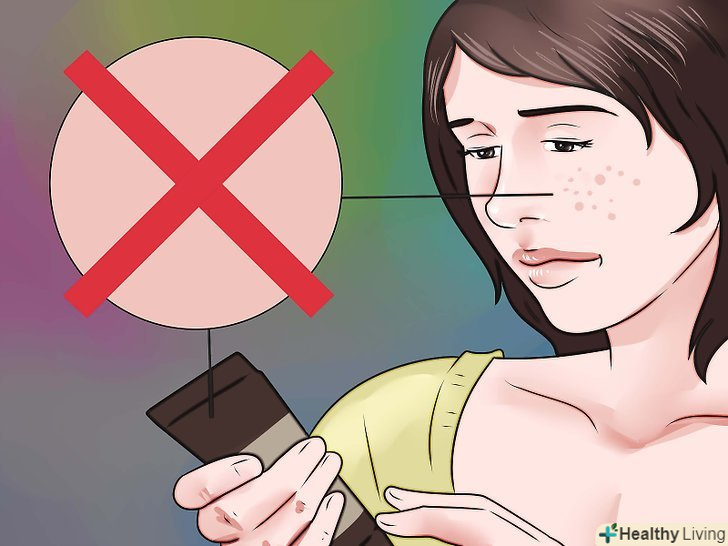 Не застосовуйте тональну основу поверх веснянок. так ви зробите їх тьмяними, а колір обличчя - неприродним. Замість цього наносите тоналку на шкіру обличчя між веснянками. [2]- Якщо ви не можете підібрати відповідний колір тональної основи, протестуйте різні її кольору на зап'ясті. Тон вашої шкіри на зап'ясті відповідає тону на обличчі.