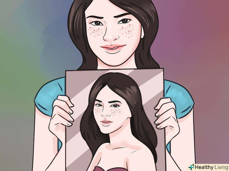 Відчувайте себе впевнено у власному одязі. Секрет впевненості полягає в тому, щоб не звертати уваги на негативні речі, які ви не можете контролювати. [11] ви не можете контролювати наявність веснянок, тому варто зосередьтеся на тому, що ви можете змінити! Одяг повинен надавати вам впевненості в собі.- Приміряйте перед дзеркалом наряди, які, як вам здається, вам підходять. Визначте, чи підкреслюють вони веснянки (або навпаки приховують їх) так як ви Того хочете.