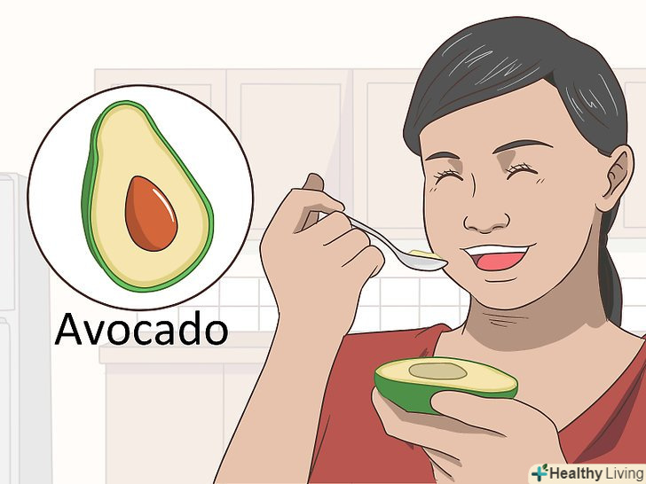 Для підтримки шкіри зволоженою їжте авокадо. ліпіди хороші для зволоження шкіри. Авокадо, зокрема, містить здорові жири, які дозволяють зберегти шкіру еластичною, при цьому рівень поганого холестерину не підвищується. Постарайтеся додавати 1-2 авокадо в тижневий раціон, щоб відчути на шкірі його переваги.- Авокадо пом'якшує шкіру через зволоження.