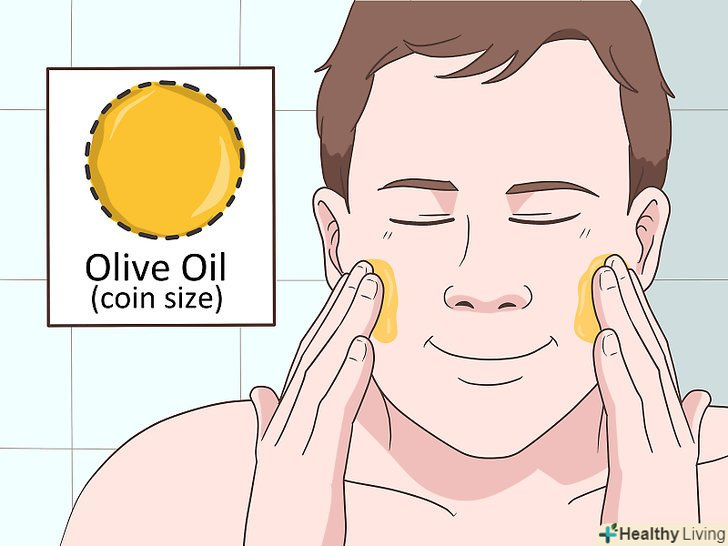 Вмивайтеся оливковою олією для зволоження шкіри. оливкова олія відома своєю здатністю пом'якшувати суху або зневоднену шкіру. Втирайте в шкіру обличчя невелику кількість (розміром з монету) оливкової олії після ванни або душу, щоб пар допоміг збільшити вбирання. Залиште оливкову олію на 10-15 хвилин, потім змийте його прохолодною водою. [13]- Як і мед, оливкова олія є вологоутримуючою речовиною.