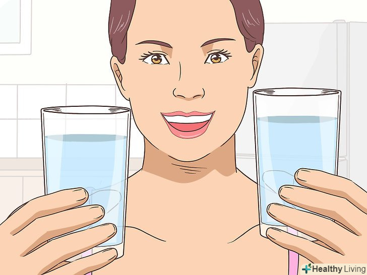 Пийте достатньо води щодня. так, питна вода не дозволить відразу збільшити вміст вологи в шкірі, проте вона допоможе видалити з організму і шкіри шкідливі токсини. Якщо збільшити споживання води, можна допомогти шкірі залишатися здоровою і сприйнятливою до зволоження. [14]- Немає універсальних рекомендацій щодо кількості води, які підходили б усім. В середньому чоловікам рекомендується випивати 15,5 склянок (3,7 л), а жінкам — 11,5 склянок (2,7 л) води в день. [15]
