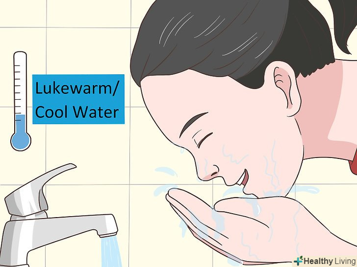 Вмивайтеся теплою або прохолодною водою. гаряча вода може привести до сухості шкіри і звести нанівець цілющі властивості ваших засобів для догляду за шкірою. Прохолодна вода ідеально підходить для ополіскування особи, але якщо у вас чутлива шкіра, то тепла теж підійде. [17]