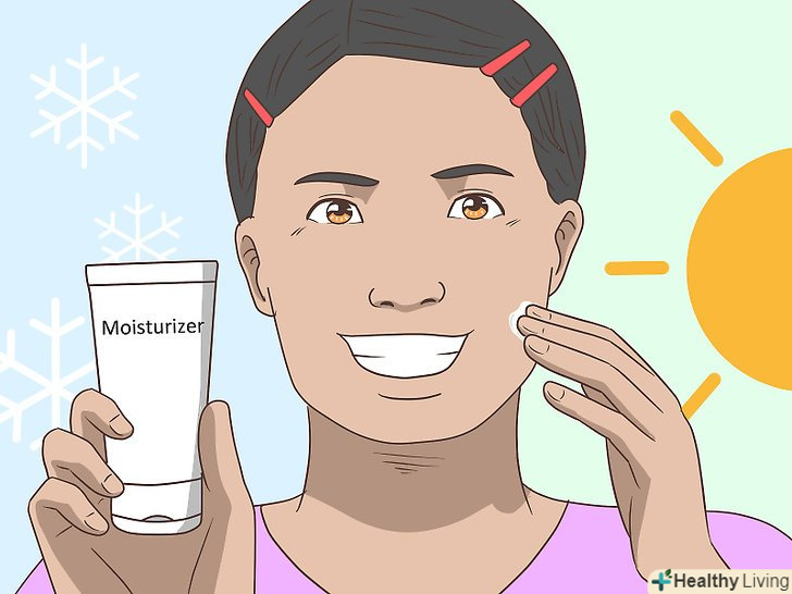 Перед перебуванням під прямими сонячними променями наносите сонцезахисний крем. Уф-промені можуть послабити ліпідний шар і позбавити шкіру вологи. Влітку або при тривалому знаходженні на вулиці наносите сонцезахисний крем і оновлюйте його час від часу протягом дня. [16]