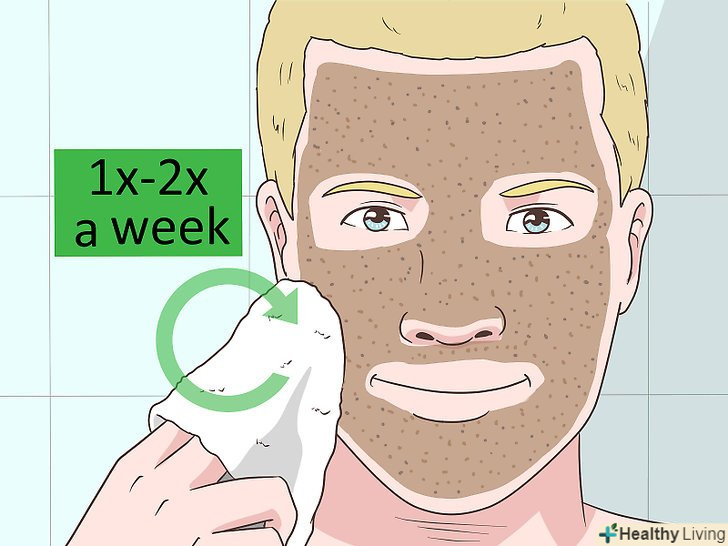 Відлущуйте шкіру на обличчі1-2 рази на тиждень. відлущування дозволить позбутися від мертвих клітин шкіри, а ще зволожуючим або інших засобів допоможе глибше проникнути в шкіру. Мочалкою потріть обличчя круговими рухами, потім обполосніть теплою водою. [5]- Не відшаровуйте шкіру частіше 1-2 рази на тиждень. Надмірним відлущуванням шкірі можна нашкодити і викликати її роздратування.