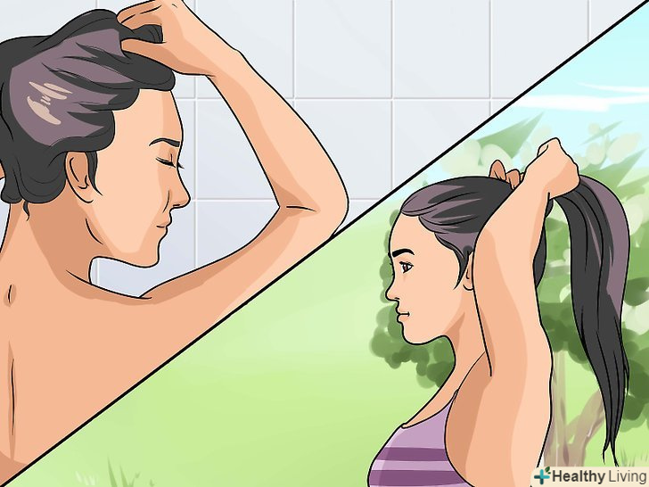 Тримайте жир, який виділяють ваше волосся, подалі від особи. якщо ваше волосся схильне до жирності, постарайтеся тримати їх подалі від шкіри обличчя – наприклад, збирайте їх в пучок на потилиці або зав'язуйте їх в "хвіст" ззаду. Жир з вашого волосся точно також може потрапити на обличчя, як і жир з ваших рук. [29]