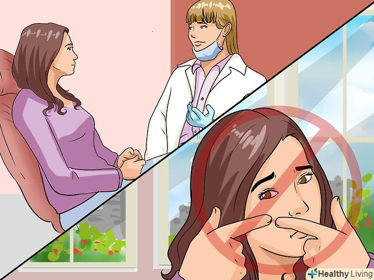 Не видавлюйте вугри. у багатьох людей часто з'являється спокуса видавити вугри. Не робіть цього. У домашніх умовах за допомогою одних лише тільки пальців або підручних інструментів ви не зможете повністю видалити залишки акне з під шкіри. А це може привести до ще більшого поширення інфекції і появи рубців. [38]- Якщо вугрі занадто докучає вам, подумайте про візит до дерматолога, який зможе правильно і без наслідків для вашої шкіри видалити вугри за допомогою професійних інструментів. [39]