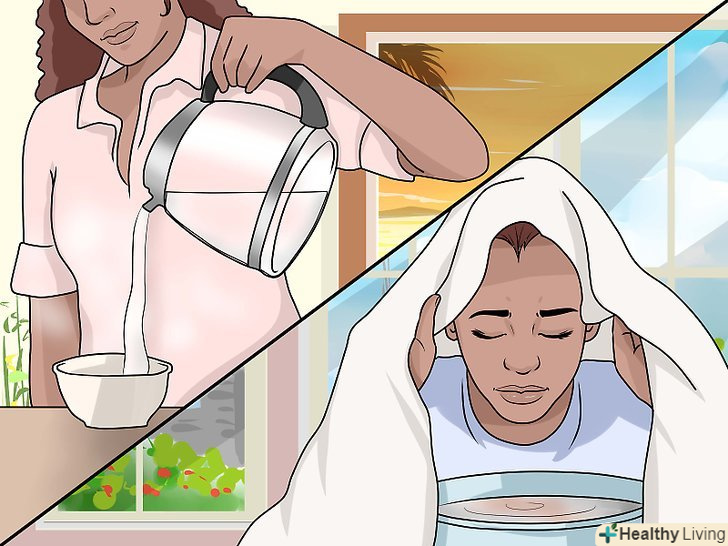 Робіть парові ванночки. цей метод допомагає зменшити прояв чорних крапок. Просто налийте в миску окріп, нахиліться над нею і накрийте рушником голову, щоб пар впливав на ваше обличчя протягом 10 хвилин. За цей час пар розм'якшить сальні пробки в порах. Після закінчення процедури вмийтеся теплою водою, щоб змити виділилася бруд. [15]