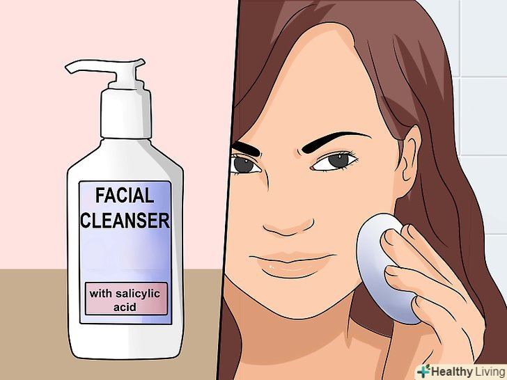 - Використовуйте миючий засіб з саліциловою кислотою 1 або 2 рази на день для очищення обличчя під час виникнення запалення. [6] вмийтеся водою, а потім протріть обличчя миючим засобом. Ви також можете скористатися мочалкою, однак при цьому намагайтеся не терти обличчя занадто сильно і проводите чистку плавними рухами. Змийте засіб для вмивання і протріть обличчя.