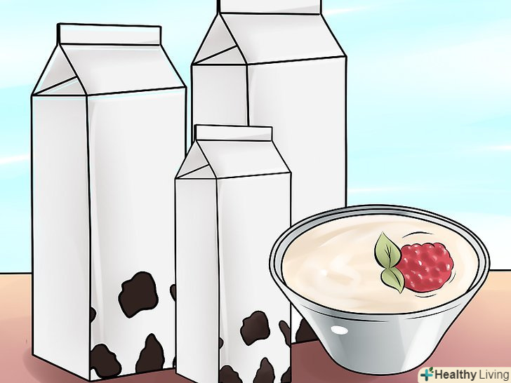 Споживайте більше вітаміну D. оскільки з приводу перебування на сонці і його допустимого часу існує занадто багато рекомендацій і питань, можна отримувати вітамін D з інших джерел і уникати зайвого впливу сонця. Вітамін D також можна отримати з їжі; хорошими джерелами є риба і риб'ячий жир, йогурт, сир, печінка і яйця.- Також можна спробувати інші продукти і напої, які збагачені вітаміном D, наприклад, пластівці для сніданку, молоко і сік. [19]