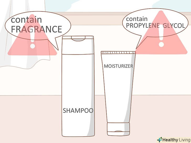 Уникайте подразників. Остерігайтеся того, що може дратувати вашу шкіру. Якщо у вас з'являться вугри або висип, спробуйте не користуватися звичними засобами по догляду за шкірою, косметикою, шампунем або лосьйоном. Якщо ви помітите поліпшення, дані кошти могли негативно впливати на шкіру. Замініть їх чимось іншим. [21]- Якщо ви вважаєте, що ваша шкіра негативно реагує на певні засоби, проконсультуйтеся з лікарем або дерматологом.