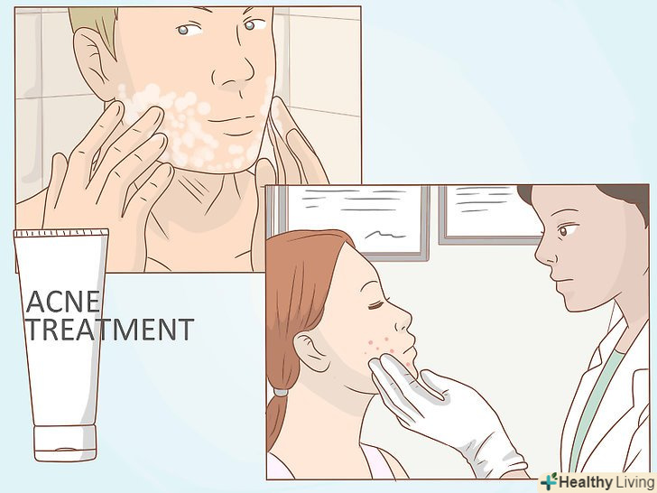 Лікуйте вугровий висип. якщо у вас часто з'являються вугри, подумайте про те, як можна ефективно позбутися від них. Можна спробувати різні засоби від вугрів і визначити ті, які підходять вам.- При виборі засобів від вугрів проконсультуйтеся з лікарем або дерматологом. Він зможе порадити Вам відпускається без рецепта крем або рецептурний засіб, виходячи з типу вашої шкіри та історії хвороби. Не виключено, що доведеться спробувати кілька засобів, поки ви не знайдете те, що підходить вам. [11]