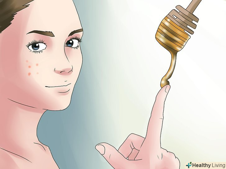 Нанесіть мед на прищі кінчиками чистих пальців. Мед має антибактеріальні та протизапальні властивості, які затримують утворення шрамів від висипу. Він також допомагає висушити прищі швидше і служить бар'єром проти зволоження. Мед містить багато корисних речовин і має цілющі властивості.- Потримайте мед на шкірі, принаймні, 15 хвилин.