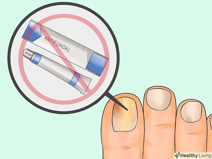 Не використовуйте засоби, що продаються без рецепта. Грибок нігтя погано піддається лікуванню, і після одужання часто бувають рецидиви. Всупереч загальній помилці, креми для лікування грибка, які продаються без рецепта, допомагають тільки в лікуванні епідермофітії стоп, а грибок нігтя лікують погано. Це пояснюється тим, що крем не може проникнути глибоко в ніготь. [6]