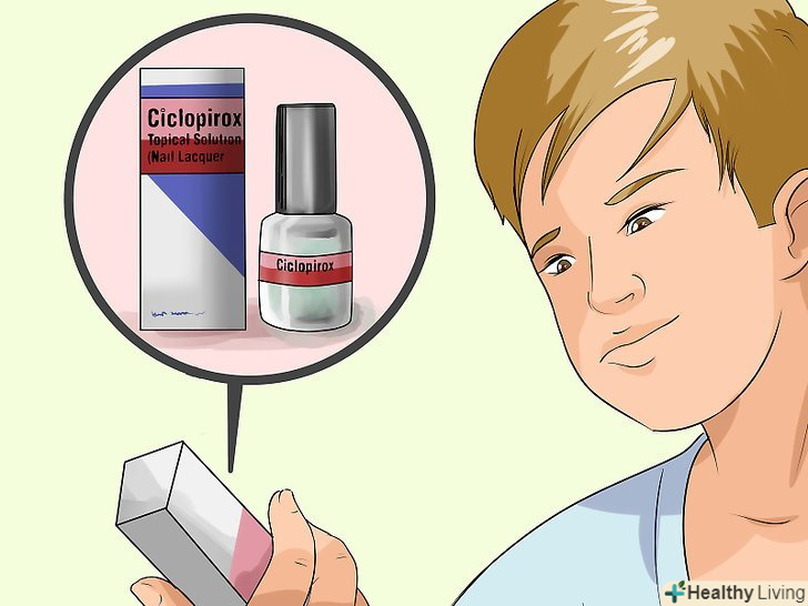 Спробуйте місцеве лікування. препарати місцевого застосування зазвичай не рекомендують використовувати окремо від таблеток. У поєднанні з внутрішнім прийомом препаратів місцеві ліки здатні зменшити тривалість курсу лікування. Якщо ви не можете приймати таблетки або не готові до тривалого прийому препаратів всередину, можна почати з місцевих препаратів.- Спробуйте "циклопірокс" - це восьмивідсотковий розчин, який потрібно наносити на ніготь протягом 48 тижнів. [8]