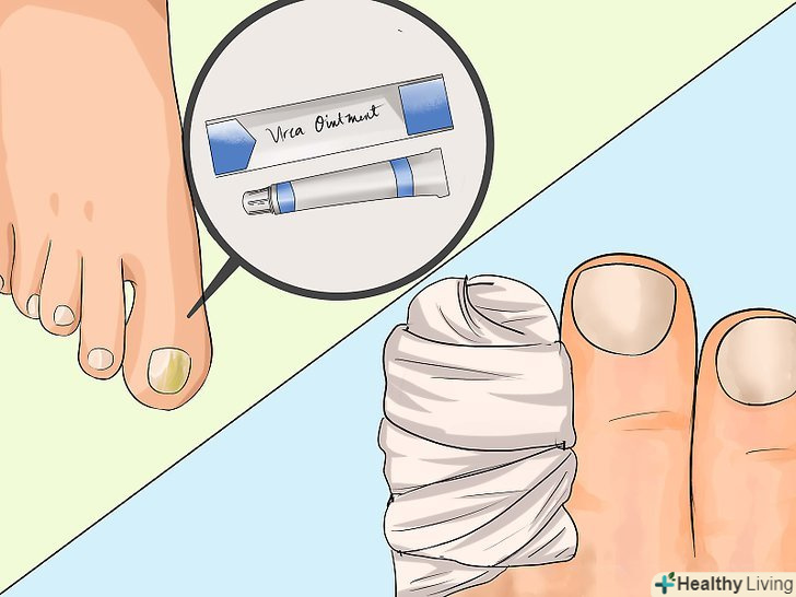 Розгляньте варіанти немедикаментозного і нехірургічного лікування. при таких способах лікування прийом препаратів всередину і хірургічне лікування не потрібні. Наприклад, можна видалити відмерлі або заражені ділянки, підрізавши ніготь. Цей метод вибирають при сильному ураженні і при інфекціях, що викликають прискорений ріст клітин нігтя.- Як правило, лікар наносить на ніготь мазь з сечовиною і накриває її пов'язкою. Пов'язку потрібно носити 7-10 днів-за цей час ніготь розм'якшиться, і лікар зможе видалити уражену область. Це безболісна процедура. [10]