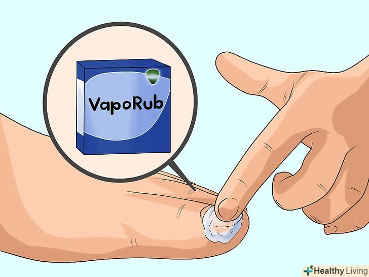 Наносите засіб проти кашлю "Доктор Мом". купити цю мазь можна без рецепта. Дослідженнями було доведено, що щоденне нанесення цієї мазі протягом 48 тижнів може покращувати стан нігтя в тій же мірі, що і при лікування восьмивідсотковим розчином "Циклопірокса". [12] для початку потрібно очистити ніготь і висушити його. Потім слід нанести невелику кількість ментолової мазі на ніготь за допомогою ватного диска і залишити на ніч. Повторюйте щодня протягом 48 тижнів.- Продовжуйте наносити мазь до 48 тижнів, навіть якщо ознаки грибка пропадуть.