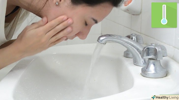 Промийте обличчя прохолодною водою. обережно помасажуйте обличчя, щоб видалити залишки миючого засобу. Прохолодна вода допоможе закрити пори.- Висушіть шкіру обличчя. використовуючи м'який, чистий рушник, акуратно промокніть шкіру насухо. Не тріть шкіру, інакше це може привести до подразнення.