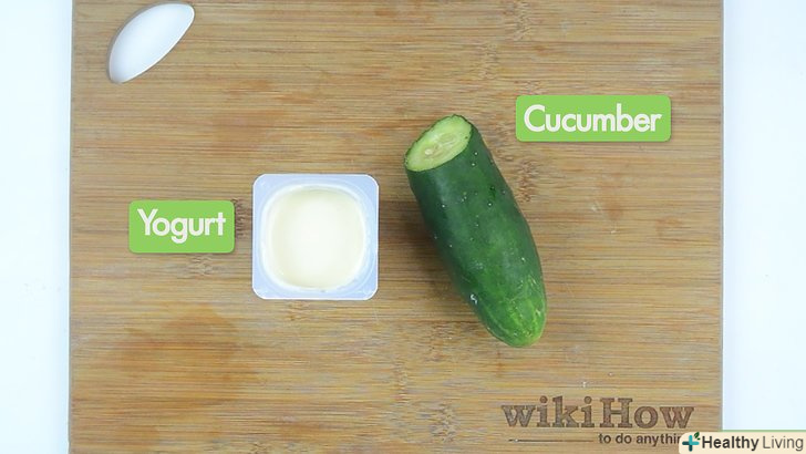 Приготуйте Очищуючий засіб з огірком для нормального типу шкіри. Помістіть всі інгредієнти в чашу блендера або кухонного комбайна і подрібніть. Нанесіть суміш на вологе обличчя і залиште на п'ять хвилин. Потім змийте теплою водою. Для приготування цього засобу вам знадобляться: [14]- ½ чашки (125 грам) йогурту