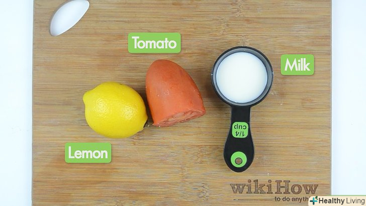 Приготуйте стимулюючий миючий засіб. Помістіть всі інгредієнти в кухонний комбайн і подрібніть до отримання суміші однорідної консистенції. Нанесіть суміш на вологе обличчя, потім змийте теплою водою. Ви можете заморозити залишки кошти і використовувати протягом одного місяця. Вам знадобляться: [17]- 1 стиглий помідор