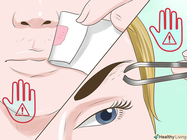 Якщо Ви користуєтеся пінцетом або воском, ретельно готуйте шкіру і доглядаєте за нею після процедури. якщо ви повинні позбавлятися від волосся даними способами, використовуйте основні запобіжні заходи, щоб уникнути появи прищів: [12]- Проводьте м'яке відлущування і очищаєте шкіру перед вищипуванням або використанням воску. Перед епіляцією наносите спеціальний антибактеріальний засіб.
