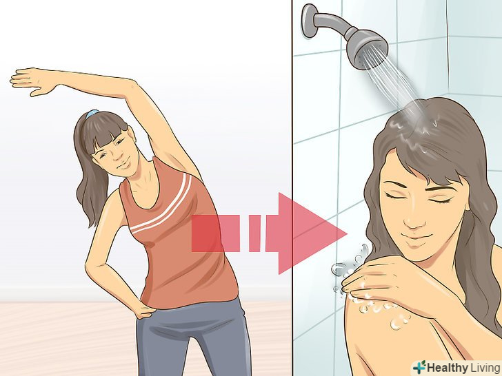 Негайно приймайте душ після занять спортом. коли тренування закінчується, слід завжди знімати пітний одяг і приймати душ. Так ваша шкіра буде дихати, а з неї зійдуть сало і Піт, які можуть спровокувати появу прищів. Якщо у вашому спортзалі немає душової кімнати, йдіть у ванну насамперед після повернення додому. [16]- Якщо у вас немає можливості відразу ж помитися, використовуйте дорожні серветки, що містять саліцилову кислоту.