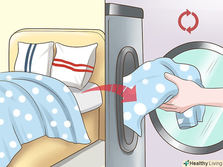 Регулярно періть речі. Так як бактерії можуть затримуватися на вашому одязі і постільній білизні, потрібно постійно прати всі тканини, що стикаються зі шкірою. Бактерії на подушці можуть стати причиною появи прищів, а брудний одяг — привести до висипань на тілі. Не забувайте часто прати одяг і міняти постільну білизну, хоча б, раз на два тижні. [18]- Якщо ви носите будь-який головний убір, регулярно його періть, щоб запобігти виникненню прищів на лобі.